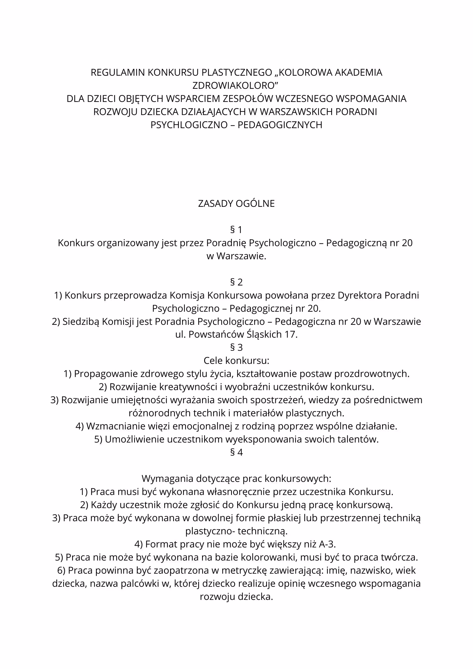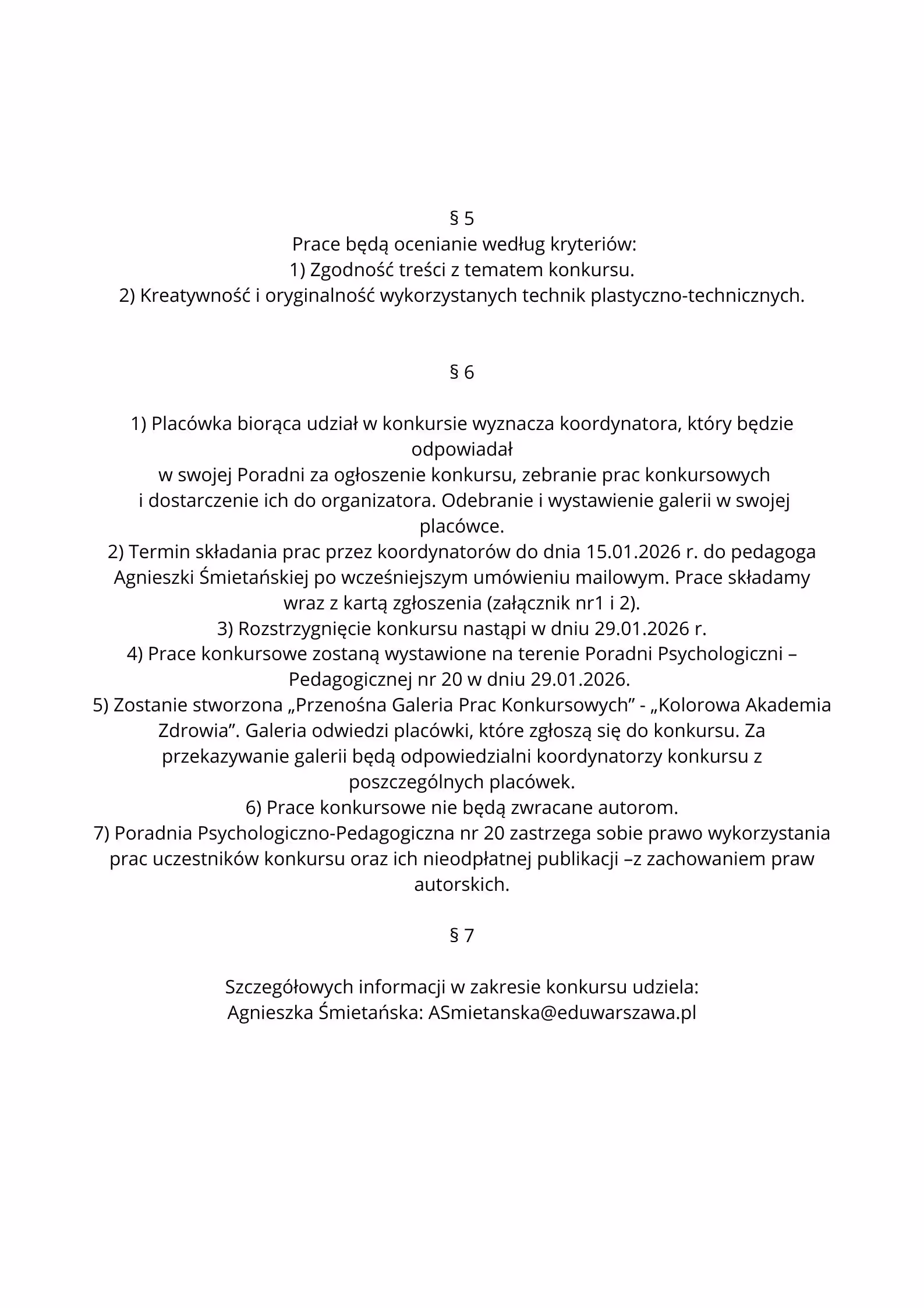 Konkurs plastyczny "Kolorowa akademia zdrowia".