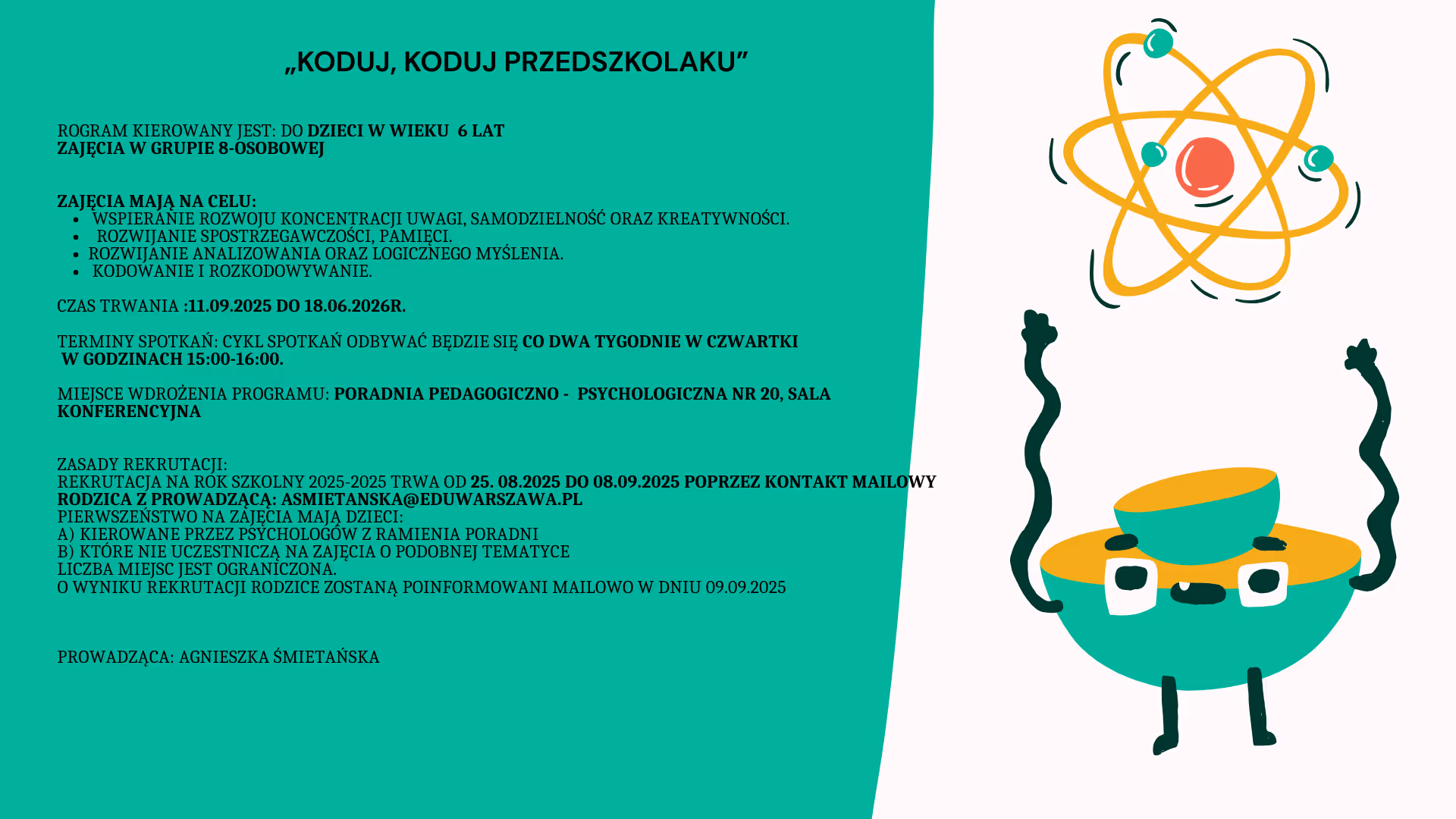 Koordynator kontaktuje się telefonicznie lub mailowo z rodzicami dzieci zakwalifikowanych do realizacji opinii w danym roku szkolnym. O kolejności przyjęć decyduje data złożenia wniosku. Brak kontaktu ze strony koordynatora oznacza dalsze oczekiwanie w kolejce.
